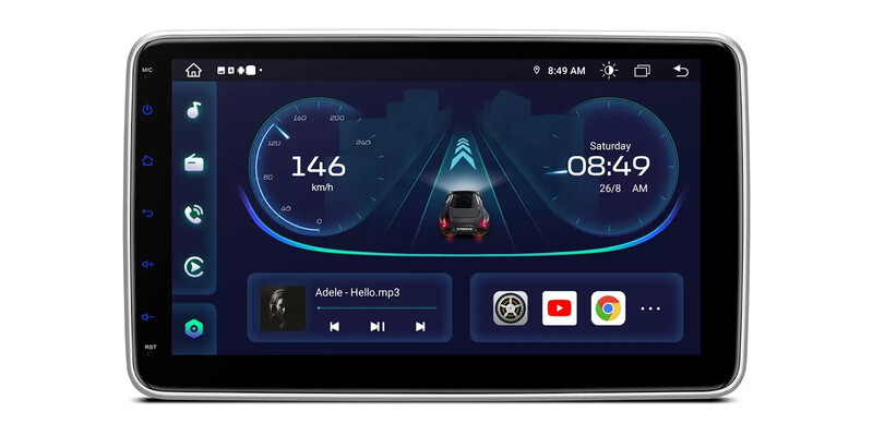 Krátký popis Univerzální 1 DIN autorádio - 10.1" HD dotykový displej, Android, GPS, DSP, DAB, Bluetooth, RDS, USB, slot pro SD kartu.