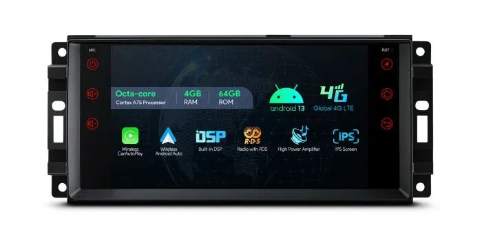 Android Octa Core 4GB DDR4 RAM + 64GB Solid State ROM 7'' 1024x600 IPS Screen Car Stereo Multimedia Player GPS Navigation System with Integrated Global 4G LTE Solution Built-in CarPlay & Android Auto & Built-in DSP High Power TDA7851 Amplifier USB Tethering Dual UI TDA7708 RDS Radio Support AHD Camera Custom Fit for Jeep/Dodge/Chrysler