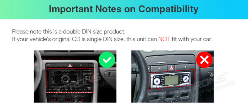 1. Vezměte prosím na vědomí, že se jedná o výrobek velikosti Double DIN. Pokud je původní přehrávač CD vašeho vozidla velikosti Single DIN, tato jednotka NEBUDE do vašeho vozidla pasovat.