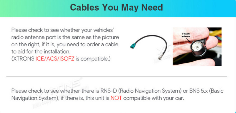 5. Zkontrolujte prosím, zda je ve vašem vozidle port pro rádiovou anténu, možná bude nutné objednat kabel pro usnadnění instalace. (XTRONS ICE/ACS/ISOFZ je kompatibilní).
