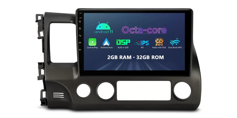 Krátký popis Autorádio pro vozy Honda Civic (2007-2011) - 10,1" HD dotykový displej QLED, Android 11, osmijádrový