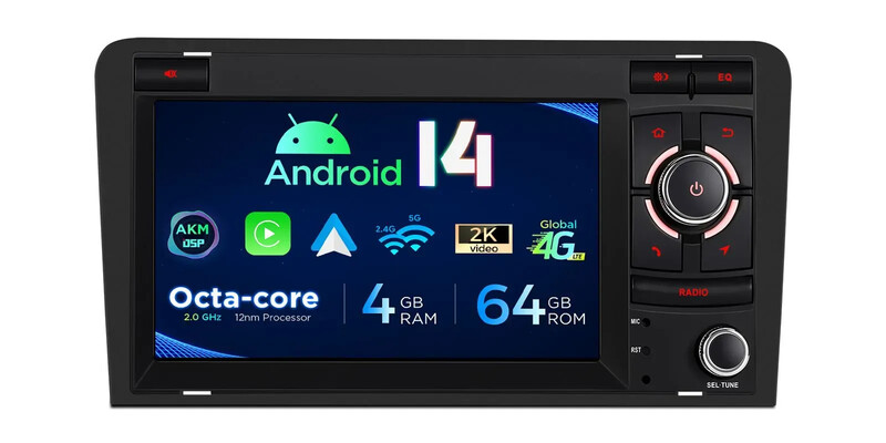 Krátký popis Autorádio pro vozy Audi A3/S3/RS3 - 7" HD dotykový displej IPS, Android 14, osmijádrový procesor, op