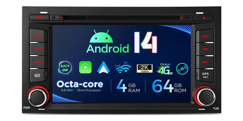 * Android 14 Octa-Core LPDDR4 4GB + 64GB ROM SSD * 7palcový dotykový displej Grade-A G+G * Vestavěné senzory gyroskopu * 12 nm Octa-Core 2.0GHZ Processor *1280*720 Resolution *2K Video PlaybackV *Built in AKM DSP *Built-in Wireless CarAutoPlay & Full Featured Android Auto, Smart Voice Interaction *Fast and Accurate GPS Navigation *Support AHD Camera *Optimized CANbus Decoding *Dynamic Ambiance with Versatile Multi-Color LED Lights *2 Sets of Stylish UI with Inclinometer Display *Screen Mirroring *Latest Bluetooth 5.0 *Dvojpásmový modul WiFi (2.4GHz a 5GHz) *Sdílení mobilní sítě přes USB Tethering *PIP-Picture in Picture *Automotive-Grade Hardware -STMicroelectronics TDA7388 Amplifier Chip *Region-free DVD Playback *Built-in 3 USB Input *Built-in DAB+ *Microphone Included *Built-in SIM Port & SD Port *Efficient Cooling System *Explore More Functions with XTRONS Accessories (Optional) -DVR, Kamera, OBD, TPMS , DAB , klávesnice a výstup HD/RCA.