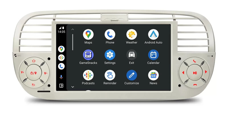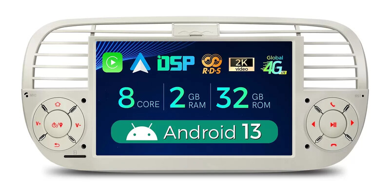 Krátký popis Autorádio pro vozy Fiat 500 - 7" HD dotykový displej, Android 13, osmijádrový procesor, operační pam