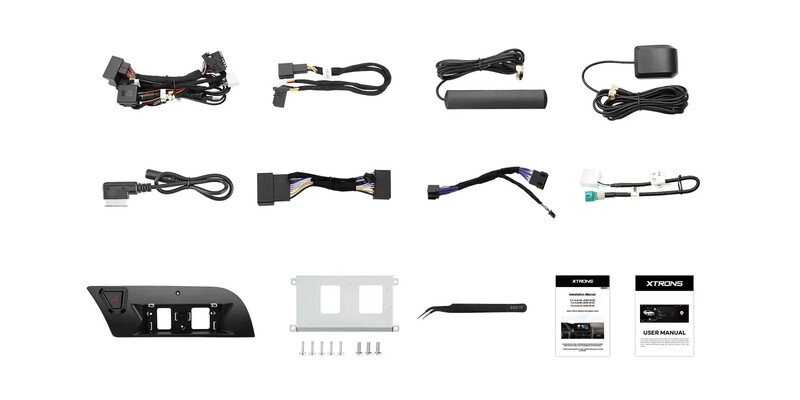 1x kabelový svazek ISO, 1x kabel nouzového osvětlení, 1x anténa 4G , 1x anténa GPS, 1x kabel AMI, 1x kabel CANbus 1, 1x kabel CANbus 2, 1x kabel LVDS, 1x pevný držák, 8x šroub, 1x instalační rám, 1x pinzeta, 1x instalační návod, 1x uživatelská příručka