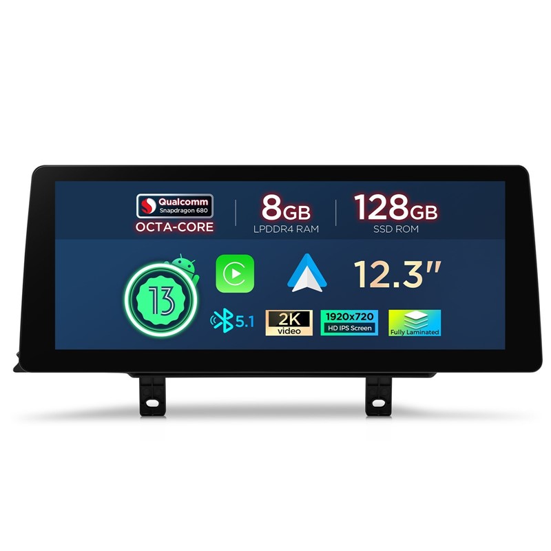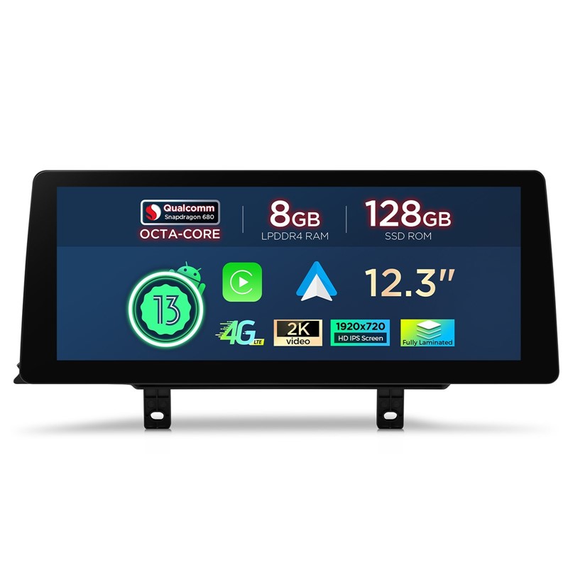 12,3" dotyková obrazovka, 4-jadrový Octa-Core procesor (Qualcomm Snapdragon 680), 8 GB RAM + 128 GB ROM, GPS, multimediálny prehrávač pre BMW 3/4 Series (2013-2016) s NBT systémom