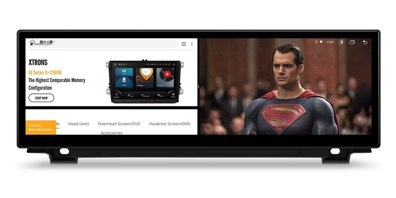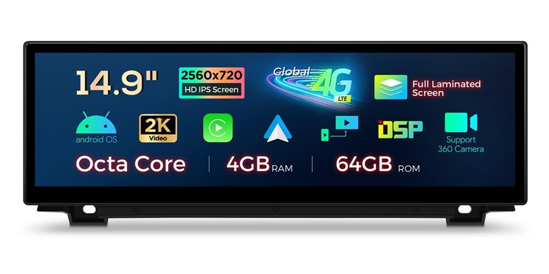 *14,9 palcový exkluzivní nový koncept Ultra-tenký design *2560*720 Super velký IPS 2.5D G+G Grade-A Obrazovka * Plně Laminovaná anti-Glare Screen *Android 14 Cortex A75 *2+A55*6 12nm Proces *Octa-Core LPDDR4 4GB+64GB ROM SSD *Global 4G LTE (Podpora 99 % dopravců po celém světě) * Stylové uživatelské téma *Wuilt-in Wireless CarPlay a bezdrátový a kabelový Android Auto *Screen zrcadlení *Podpora AHD kamery * Anglický a německý uživatelský manuál a průvodce instalací *Původní zobrazení informací o autech *Originální Funkce Zachovány -iDrive systém zachovaný -Zásobitelský systém -Originální rádio -Pravný CD přehrávač -Bluetooth -Backupní displej fotoaparátu - Funkce řízení kol *Postavitelný DSP *Pravná GPS navigace *Bluetooth 5.0 *Dual Band Wi-Fi (2.4GHz & 5GHz) *Sdílení Mobilní Sítě Přes USB Tethering *2K Video Přehrávání přehrávání * Multitaskový displej *PIP-Obrázek v obraze *Postava 2 USB vstup * V ceněn mikrofon *Prozkoumejte více funkcí s příslušenstvím XTRONS (volitelné) -DVR, Fotoaparát, OBD, TPMS a DAB