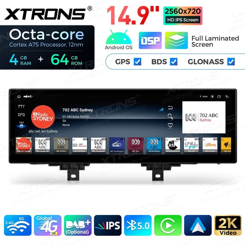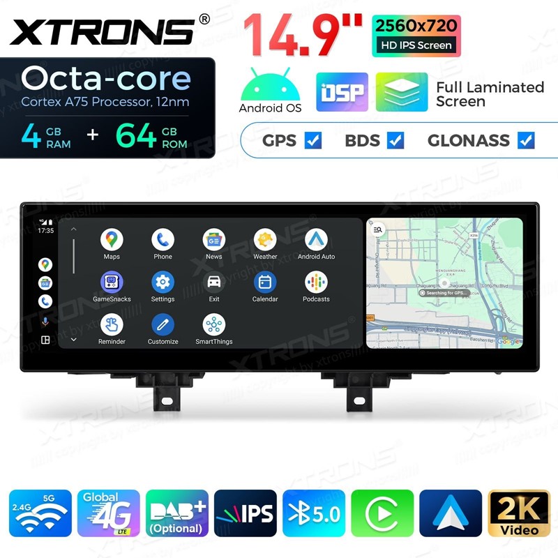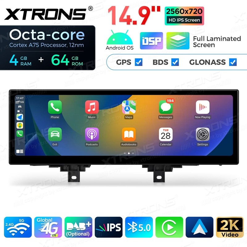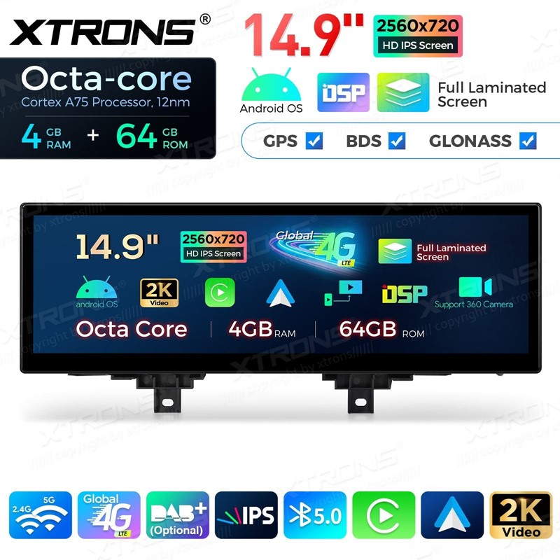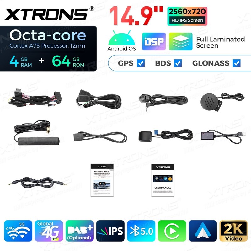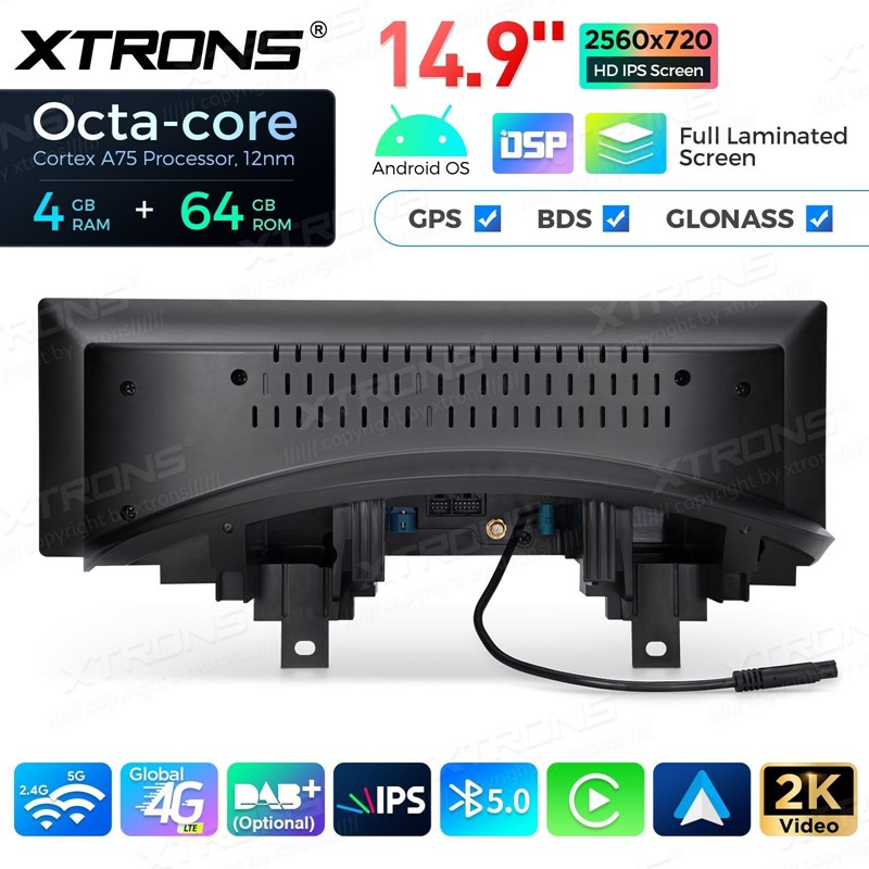 *14,9 palcový exkluzivní nový koncept Ultra-tenký design *2560*720 Super velký IPS 2.5D G+G Grade-A Obrazovka * Plně Laminovaná anti-Glare Screen *Android 14 Cortex A75 *2+A55*6 12nm Proces *Octa-Core LPDDR4 4GB+64GB ROM SSD *Global 4G LTE (Podpora 99 % dopravců po celém světě) * Stylové uživatelské téma *Wuilt-in Wireless CarPlay a bezdrátový a kabelový Android Auto *Screen zrcadlení *Podpora AHD kamery * Anglický a německý uživatelský manuál a průvodce instalací *Původní zobrazení informací o autech *Originální Funkce Zachovány -iDrive systém zachovaný -Zásobitelský systém -Originální rádio -Pravný CD přehrávač -Bluetooth -Backupní displej fotoaparátu - Funkce řízení kol *Postavitelný DSP *Pravná GPS navigace *Bluetooth 5.0 *Dual Band Wi-Fi (2.4GHz & 5GHz) *Sdílení Mobilní Sítě Přes USB Tethering *2K Video Přehrávání přehrávání * Multitaskový displej *PIP-Obrázek v obraze *Postava 2 USB vstup * V ceněn mikrofon *Prozkoumejte více funkcí s příslušenstvím XTRONS (volitelné) -DVR, Fotoaparát, OBD, TPMS a DAB