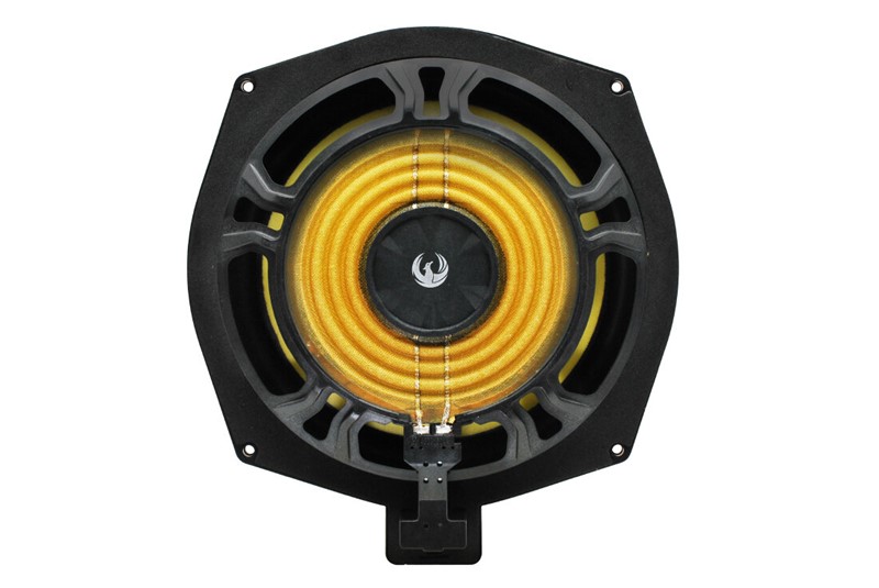 • 8" (200 mm) subwoofer pro umístění pod přední sedadla,