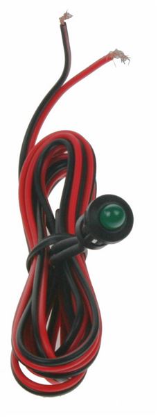 Samoblikací kontrolní LED dioda s objímkou a kabelem 80 cm zelená. Stačí připojit na 12 V a sama bliká, vhodná jako imitace autoalarmu.